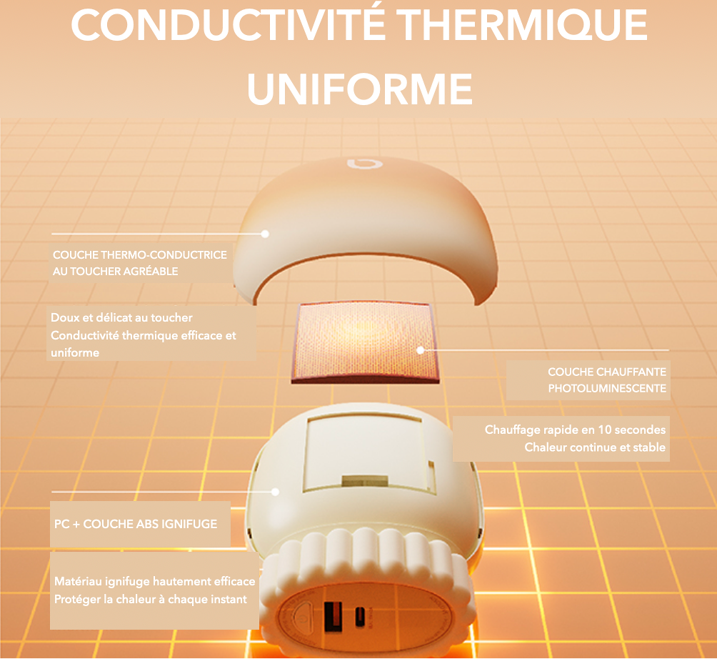 • Contenu : chauffe-main + câble USB-C + guide d’utilisation.