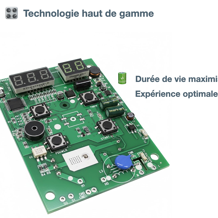 🎛️ Réglages précis : 30-85 °C via télécommande + minuterie intégrée.