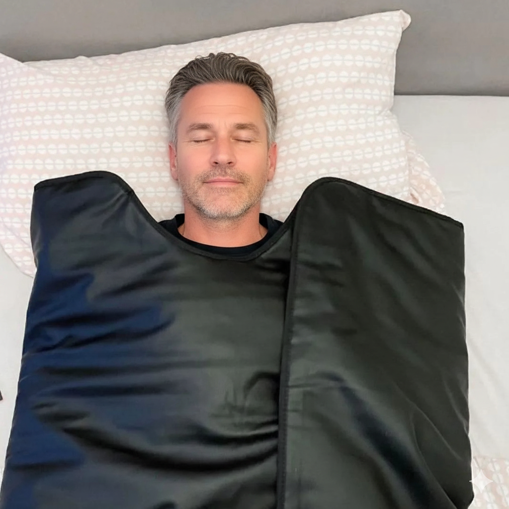 La couverture chauffante infrarouge Calora type sauna créé un havre privé : chaleur profonde, régulière, qui enveloppe le corps comme un sauna personnel - à la maison, quand vous voulez.